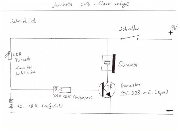 Lichtschranken Alarmanlage Zeichnung Hilfe Schule Technik Elektronik
