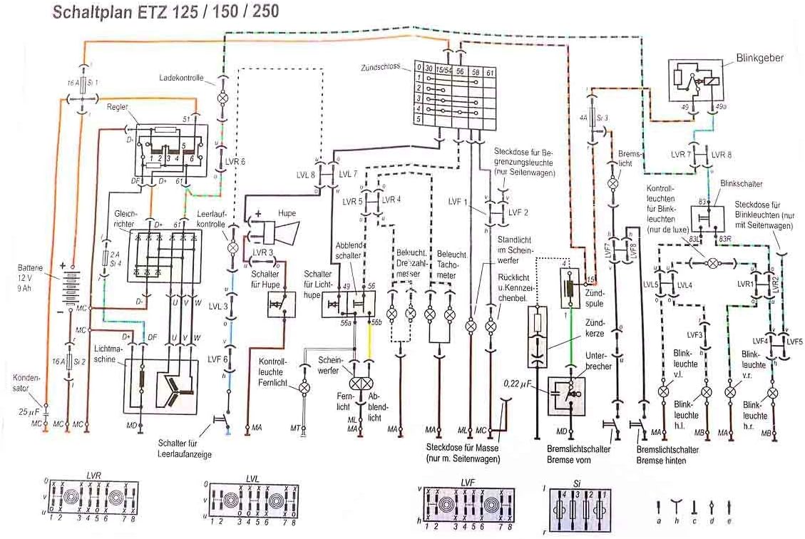 ETZ 125 150 251 301 Stromlaufplan TS 125 150. Lichtmaschine 12V ETZ125 ETZ150 ETZ250 ETZ251 ETZ301 original DDR EUR 4842 EUR 5900 Versand. Das Set beinhaltet Stator Grundplatte Rotor Schwungscheibe Zündspule Blinkgeber Regler notwendige Kabel Halteschellen Montagebleche und eine Einbauanleitung mit Schaltplan und Bilder zum Einbau.