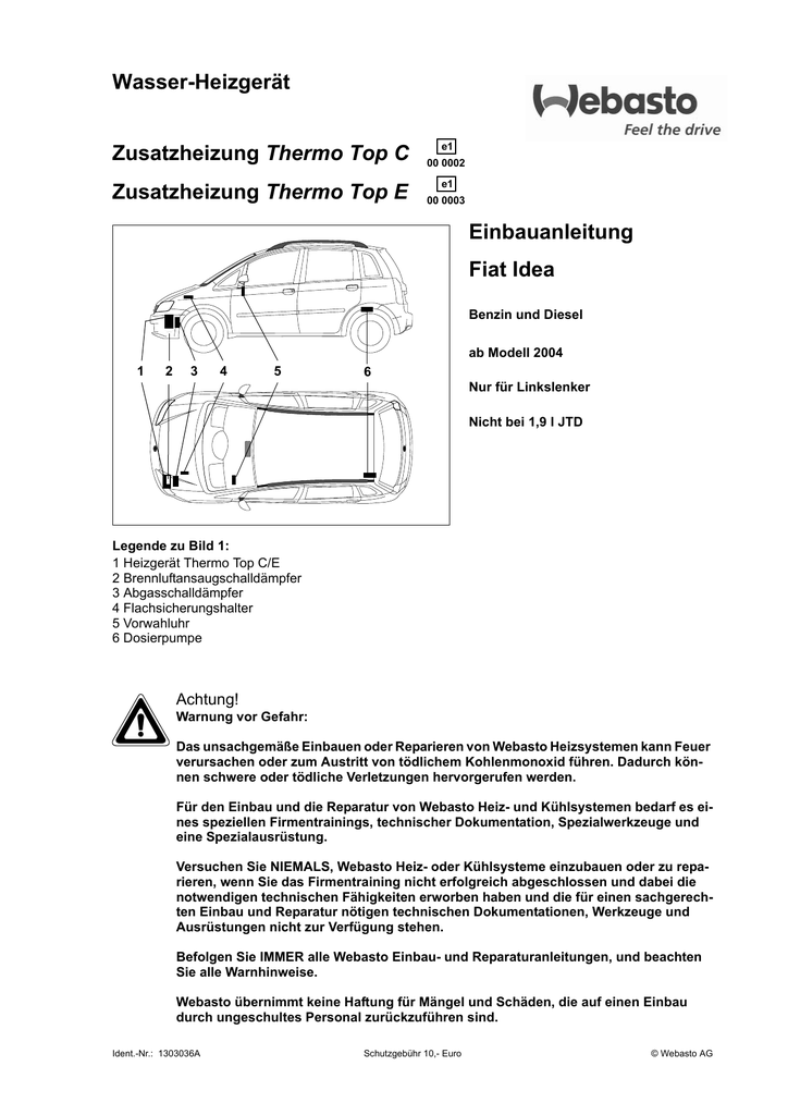 Befolgen Sie Immer Alle Webasto Einbau Und Reparaturanleitungen Und Beachten Sie Alle Warnhinweise Pdf Kostenfreier Download